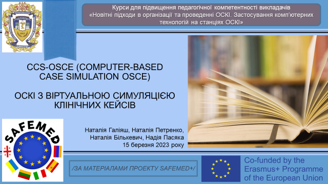 З 14 по 23 березня 2023 року в Тернопільському національному медичному університеті імені І.Горбачевського відбулися курси підвищення кваліфікації викладачів «Новітні підходи в організації та проведенні ОСКІ. Застосування комп’ютерних технологій на станціях ОСКІ» в рамках дисемінації результатів проєкту SAFEMED+ «Симуляційне навчання на додипломному етапі медичної освіти для підвищення безпеки та якості обслуговування пацієнтів» програми Erasmus+ КA2 CBHE.