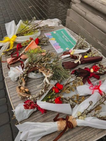 Продавали вербові композиції другокурсники групи ММ-201 Ярина Турчин, Андрій Хомин, Вікторія-Анжеліка Романович.