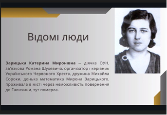 Доповідь на тему «Моя рідна Городоччина» підготувала Юлія Павонська – студентка ММ-206 (куратор професор С.Н. Вадзюк)