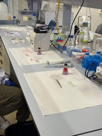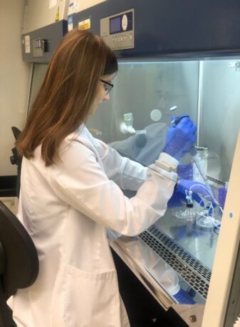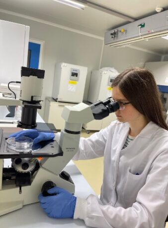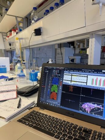Під наглядом техніків Pilar Gueiro Lopez: навчилась готувати розчини необхідні для експериментів та Lucia Alvarino Sanjurio: зрозуміла принцип дії проточного цитометра та навчилась працювати із різними видами мікроскопів, а саме: Leica DMI6000B fully automated inverted researcher microscope, Confocal Microscope – Leica Microsystem та імунофлюорисцентними мікроскопами Olympus. Отримані зображення опрацьовувала у програмах «LAS X», «Aivia Community 11.0.1» та «ImageJ».