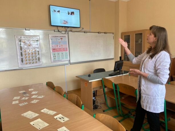 Майстер-клас з медичної генетики, який провела асистентка кафедри медичної біології Фурка О. Б., передбачав бесіду з учнями на тему «Основи генетики людини». Майбутні студенти ознайомилися з механізмом успадкування груп крові та резус-фактора на прикладі ситуаційних задач, ознайомилися з поняттями «фенотип» і «генотип», а також з причинами виникнення мутацій у організмі людини.