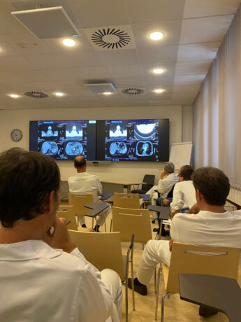 Ще одним важливим етапом стажування, що сприяв розширенню знань та здобуттю досвіду була участь в ранкових клінічних обговореннях, конференціях, так званих «tumor board», що базуються на мультидисциплінарному підході щодо діагностики лікування хворого. Ознайомився з особливостями консультативного прийому пацієнтів з онкопатологією печінки, де професор Грунбергер щиро ділився своїм практичним досвідом з детальним розглядом та поясненням кожного клінічного випадку.