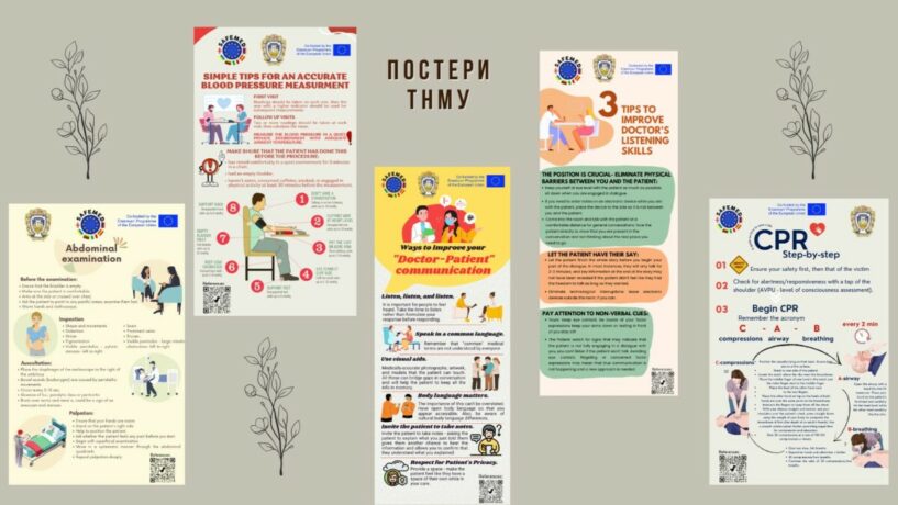 Одним з важливих завдань проєкту було створення низки постерів з основних clinical skills, які можуть і будуть використані для навчання студентів як на базі центру симуляційного навчання університету, так і на базах профільних кафедр.