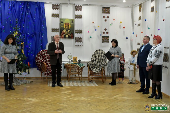 Із вітальним словом до присутніх звернувся директор музею Ярема Шатарський. Модераторами мистецького дійства стали працівниці музею Галина Гнатишин, старший науковий співробітник відділу фондів, та Галина Завіша, завідувачка сектора зберігання відділу фондів. Вони привітали всіх присутніх із справді знаковою подією в культурному житті Тернополя і надали слово почесним гостям виставки – Світлані Байталюк, директору департаменту культури і туризму ТОВА, Олександру Богомолу, раднику начальника Тернопільської ОВА, Олегу Сиротюку, депутату Тернопільської облради. До привітань долучилися доцент кафедри української мови ТНМУ ім. І. Я. Горбачевського Ігор Гаврищак та керівник центру виховної роботи та культурного розвитку, доцент Марта Руденко.