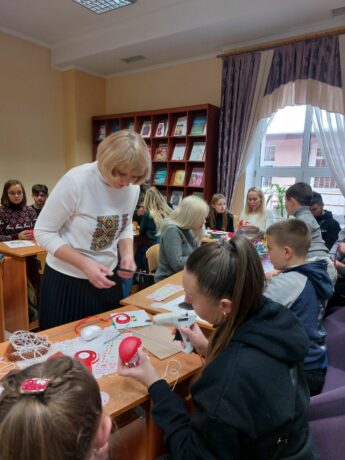 Саме так наші бібліотекарки вирішили відсвяткувати важливу для книгозбірні дату – річницю від часу започаткування проєкту «Вишиті символи доброчинності», який успішно реалізовується в університетській бібліотеці. У вільний час, вдома, під час заощаджених хвилин обідньої перерви вони розглядали та обговорювали нові орнаменти, ділилися особистими мистецькими секретами, пропонували нові ідеї і невтомно творили – хрестик до хрестика, кульку до кульки, писанку до писанки, сердечко до сердечка … І робили це не тільки заради естетичних уподобань. За підтримки волонтерських організацій та окремих ентузіастів усі рукотвори реалізовуються за кордоном, а зароблені таким чином кошти спрямовуються на допомогу ЗСУ. За час існування ініціативи виготовлено та реалізовано понад 500 вишитих сувенірів.