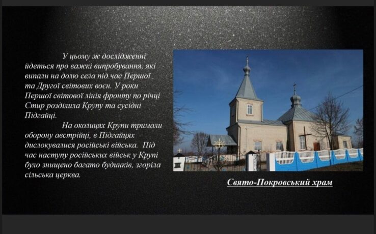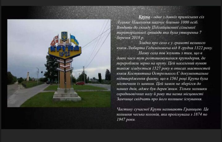 Студентка Анна Панасюк із ММ-231 розповідала про рідне село Крупа, яке є одним із давніх приміських сіл Луцька. Населення налічує близько 1000 осіб. Згадка про село є у грамоті великого князя Любарта Гедиміновича від 8 грудня 1322 року.