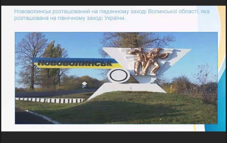 Валентин Солдатов, студент ММ-231, доповів матеріал, який підготувала одногрупниця Дарина Горох про рідне місто – Нововолинськ. Місто розташоване на південному заході Волинської області, яка розташована на північному заході України (на відстані близько 15 км від кордону з Польщею і приблизно за 92 км від кордону з Білоруссю).