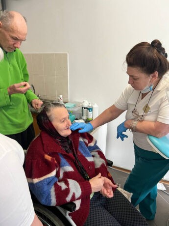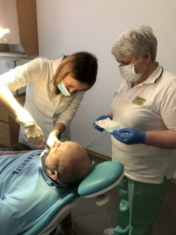 Під час лікарського прийому в геріатричному пансіонаті Наталія Твердохліб та Наталія Гутор надали стоматологічно-хірургічну допомогу 18 пацієнтам. Займалися проведенням консультацій, видаленням рухомих зубів, які не підлягають лікуванню та протезуванню. До їх приїзду медпрацівники пансіонату все підготували – і стерильні інструменти, і анестетики, стерильні тампони та засоби швидкої дезінфекції. А пацієнти були дуже вдячними за професійну допомогу, чуйність, відданість своєму фаху та доброчинність.