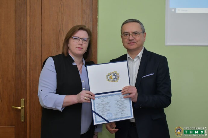 Перед початком засідання в урочистій обстановці ректор університету вручив атестати доцентів: