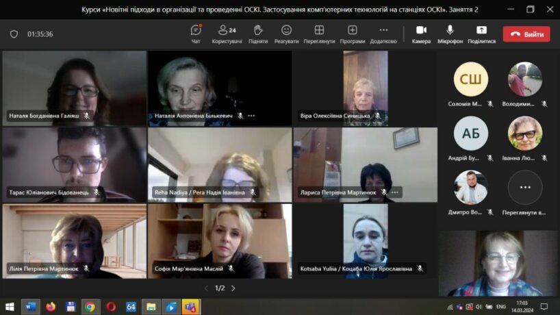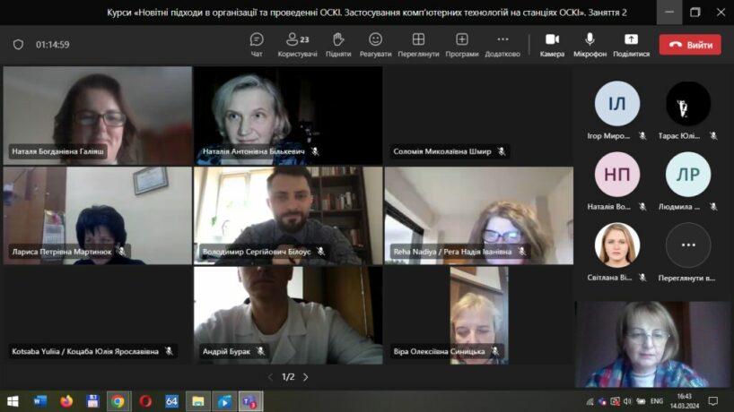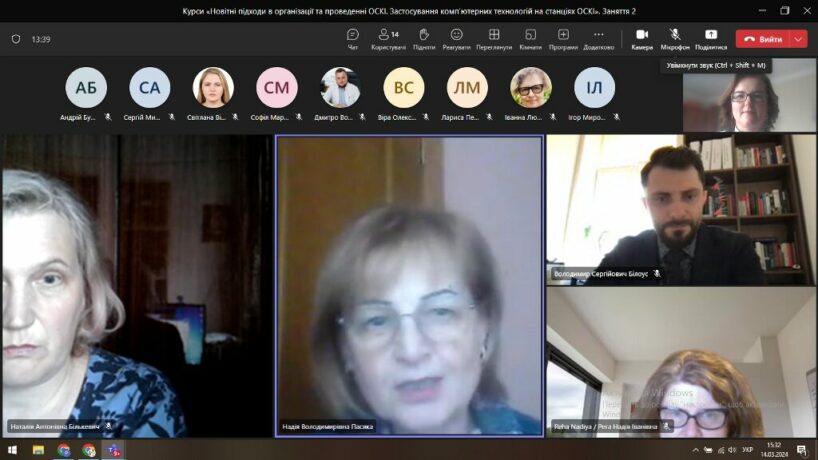 Оскільки курси проводились у гібридному форматі, онлайн заняття були присвячені обговоренню досвіду проведення ОСКІ в країнах-учасницях проєкту SAFEMED+, зокрема в університеті Сантьяго де Компостела, Іспанія та двох медичних університетах в Єревані, Вірменія (Н. Бількевич). Також вона в деталях зупинилася на етапах підготовки до ОСКІ, акцентувала на необхідності ретельної підготовки методичних матеріалів та клінічних сценаріїв. Учасники мали змогу задавати питання, щоб з’ясувати незрозумілі моменти.