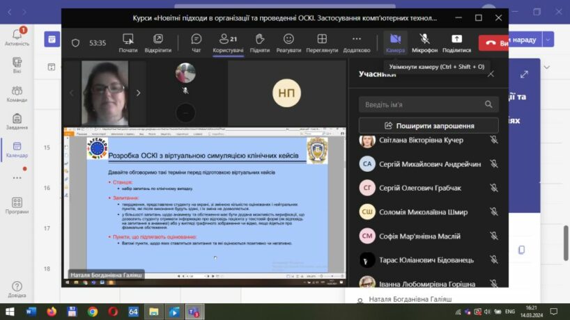 13-21 березня 2024 року в ТНМУ відбулися курси підвищення професійної майстерності викладачів «Новітні підходи в організації та проведенні ОСКІ. Застосування комп’ютерних технологій на станціях ОСКІ». Кураторами курсу стали Надія Пасяка, провідний фахівець міжкафедрального навчально-тренінгового центру ТНМУ, та доцентки Наталія Галіяш, Наталія Петренко та Наталія Бількевич.