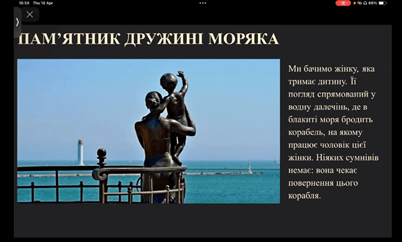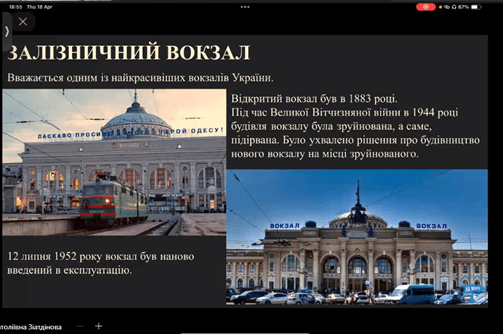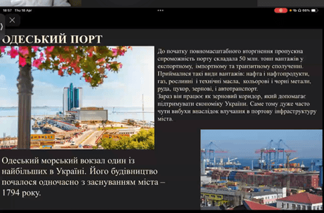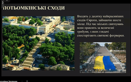 Третю доповідь підготувала студентка ММ-234 Зіатдінова Аліна. Дівчина нагадала присутнім, що Одеська область є найбільшою в Україні. Розташоване місто на узбережжі Чорного моря, тут також є найбільший морський торговий порт держави.