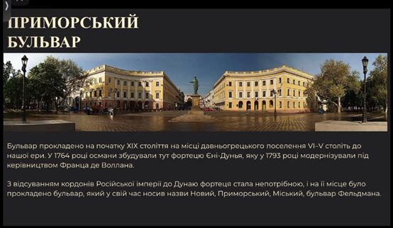 Приморський бульвар Одеси прокладено на початку ХІХ століття на місці давньогрецького поселення VI–V століть до нашої ери. У 1764 році османи збудували тут фортецю Єні-Дунья, яку у 1793 році модернізували під керівництвом Франца де Воллана.