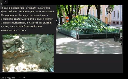 В ході реконструкції бульвару в 2008 році було знайдено залишки грецького поселення. Це фундамент будинку, ритуальні ями з останками тварин, яких приносили в жертву. Залишки фундаменту поміщені під скляний купол, І кожен бажаючий може ознайомитися з ними.