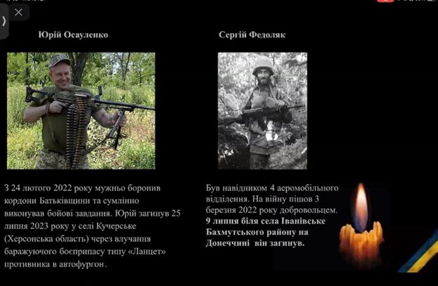 Постійні тривоги і прильоти стали буденністю для одеситів. Але, незважаючи на це, Одеса продовжує приймати до себе гостей і пам’ятати полеглих героїв, серед яких Юрій Осауленко (з 24 лютого 2022 року мужньо боронив кордони Батьківщини та сумлінно виконував бойові завдання. Юрій загинув 25 липня 2023 року у селі Кучерське (Херсонська область) через влучання баржуючого боєприпасу типу «Ланцет» противника в автофургон) та Сергій Федоляк (був навідником 4 аеромобільного відділення. На війну пішов 3 березня 2022 року добровольцем.9 липня біля села Іванівське Бахмутського району на Донеччині він загинув)