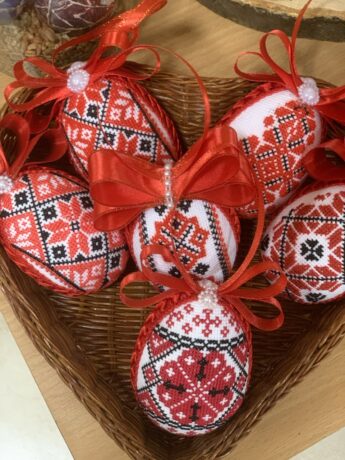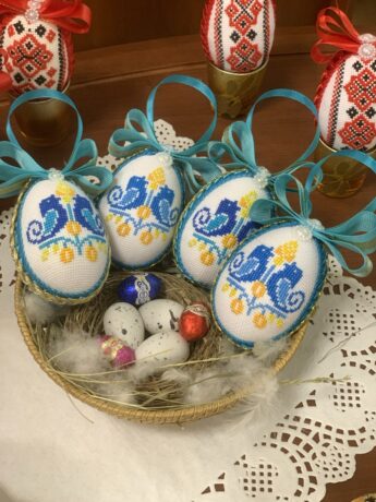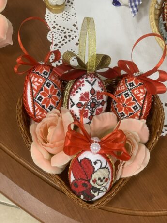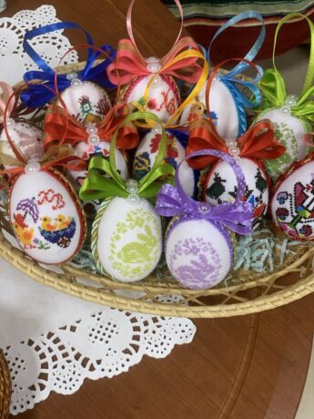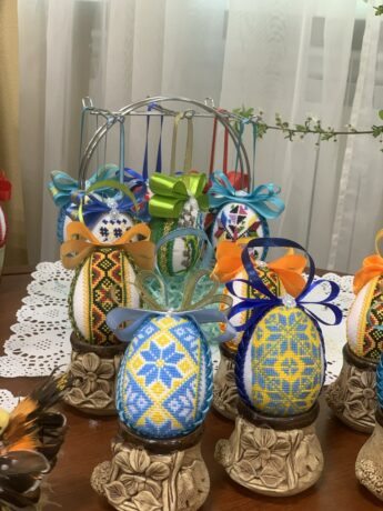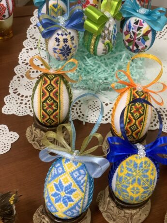 У бібліотеці медичного університету вже панує Великодній настрій. Читальна зала перетворились на острівець надії, світла і тепла: тут ви можете побачити виставку-інсталяцію вишитих рукотворів «Писанка Перемоги». Ці вироби поєднали в собі два українських традиційних мистецтва – писанкарства та вишивки, зокрема вишивка хрестиком. Вкладаючи не тільки фантазію, але душу й серце, створили цю красу працівниці нашої книгозбірні. Вишивали з метою допомоги нашим захисникам для участі у проекті «Бандеролька перемоги», започаткованому Благодійним фондом «Промінь сонця». Спільними зусиллями з іншими учасниками проекту вдалося зібрати чимало донатів за кордоном.
