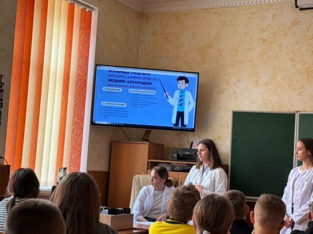 Студентки вдало підібрали матеріал, який був цікавий для учнів. Майбутні лікарі акцентували увагу на найбільш поширених видах гельмінтів, шляхи інвазії, патогенний вплив на організм, клінічні прояви гельмінтозу, лабораторну діагностику та профілактику хворіб пов’язаних з гельмінтами. Студенти акцентували увагу учнів на важливості гігієни у повсякденному житті людини.
