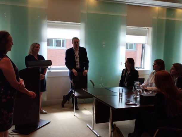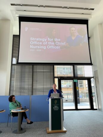 Учасники відвідали офіс головного спеціаліста з медсестринства в складі Міністерства охорони здоров’я Ірландії (Office of the Chief Nurse, Department of Health) та зустрілися з головним спеціалістом з медсестринства Рейчел Кенна (Ms Rachel Kenna, Chief Nursing Officer). Кенна Рейчел і співробітники офісу розповіли про структуру, завдання і перспективні напрямки системи охорони здоров’я Ірландії, структуру і завдання офісу головного спеціаліста з медсестринства, національні пріоритети медсестринства та акушерства, а також особливості формування звіту органу з експертної оцінки з медсестринства і акушерства. Катерина Комар розповіла про перспективи розвитку медсестринства в Україні та ознайомила з напрямками роботи Центру розвитку медсестринства.
