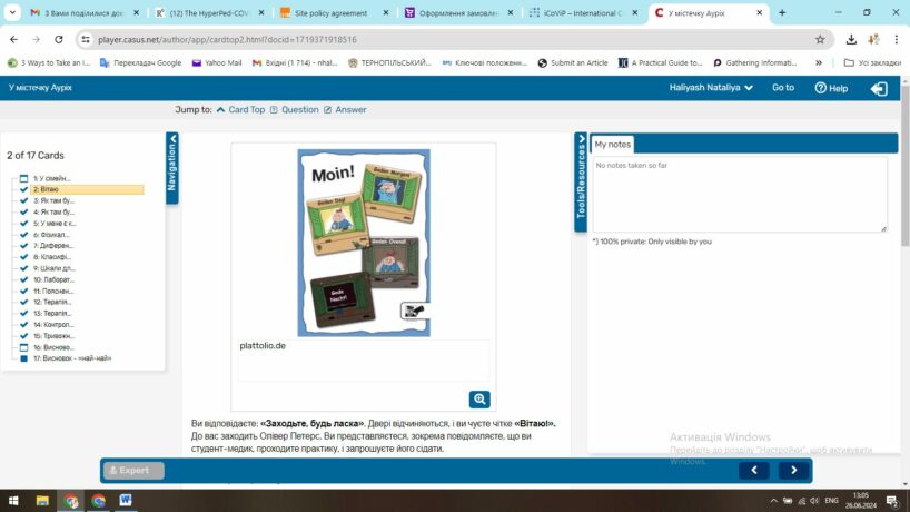 Світовим трендом в розвитку клінічного мислення є робота з віртуальними пацієнтами на базі спеціально розроблених платформ, як от, наприклад, CASUS. Безоплатний доступ до цієї платформи наданий українським студентам та викладачам завдяки проєкту «Ukraine Digital» та університету Людвига Максимілана, Мюнхен. На цій платформі представлено біля 200 кейсів українською мовою, які розроблені експертами з різних країн Європи в рамках проєкту ICoVIP (https://icovip.eu/). Запрошуємо реєструватися на цій платформі (https://player.casus.net/pmw2/app/homepage.html) з университетских скриньок, щоб попрактикувати своє клінічне мислення.