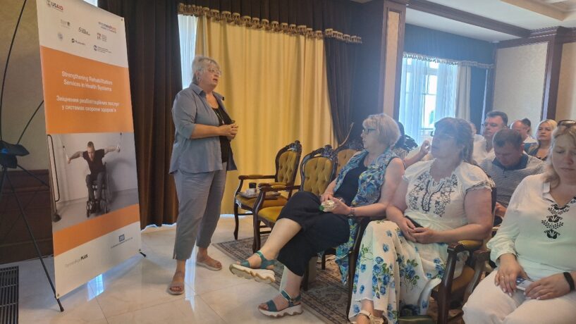 Олена Лазарєва – завідувачка кафедри фізичної терапії та ерготерапії Національного університету фізичного виховання і спорту України, Національний консультант з освіти проєкту «Покращення реабілітаційних послуг у системах охорони здоров’я», а також представники від ЗВО України.