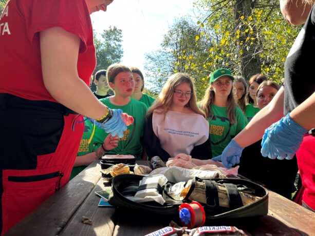 Викладачі та студенти університету проводили майстер-класи для усіх охочих, вчили учасників заходу правильній базовій підтримці життєдіяльності та методів зупинки критичних кровотеч.