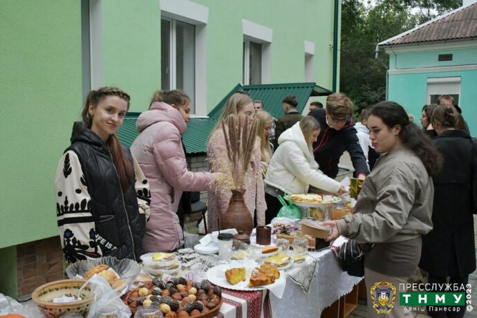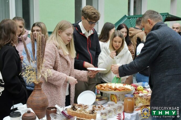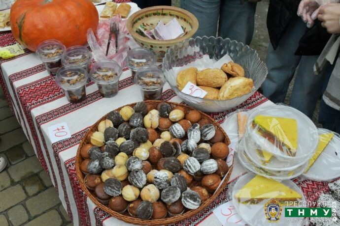 У дворі корпусів на вулиці Олени Теліги панувала неймовірна атмосфера. Гостей та учасників ярмарки частували традиційними українськими стравами: варениками зі шкварками, дерунами зі сметаною, печеною картоплею з салом, млинцями. Для поціновувачів смаколиків на столах було представлено різну випічку. Лунали українські пісні під акомпанемент гітари.