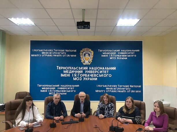Організатори та спікери вебінару: голова Ради молодих вчених Анастасія Дуб, лікар-хірург Сергій Карпенюк, професор Іван Кліщ, лікар-ендокринолог, доцент Людмила Мазур, куратор Наукового товариства студентів, доцент Світлана Кучер, голова Наукового товариства студентів Вікторія Мірошник