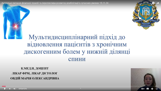 Під час другого дня конференції 15.11.2024 р. (секційне засідання) під головуванням професора Д.В.Попович та співробітників кафедри фізичної терапії, ерготерапії та фізичного виховання ТНМУ було заслухано надзвичайно багато цікавих та професійних доповідей від науковців конференції. «Мультидисциплінарний підхід до відновлення пацієнтів з хронічним дискогенним болем у нижній ділянці спини» представила доцент Марія Овдій з Національного медичного університеті імені О.О. Богомольця.