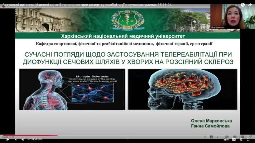 Зокрема, доповідь «Cучасні погляди застосування телереабілітації при дисфункції сечових шляхів у хворих на розсіяний склероз» була продемонстрована командною роботою науковців Харківського національного медичного університету – доцентами Оленою Марковською і Ганною Самойловою.