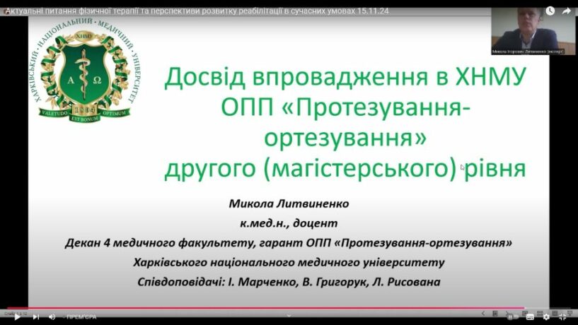 Команда науковців в складі Миколи Литвиненка, Григорук Вікторії, Марченко Ірини, Рисованої Любові з Харківського національного медичного університету представили доповідь на тему «Досвід впровадження в ХНМУ ОПП «Протезування-ортезування» другого (магістерського) рівня».
