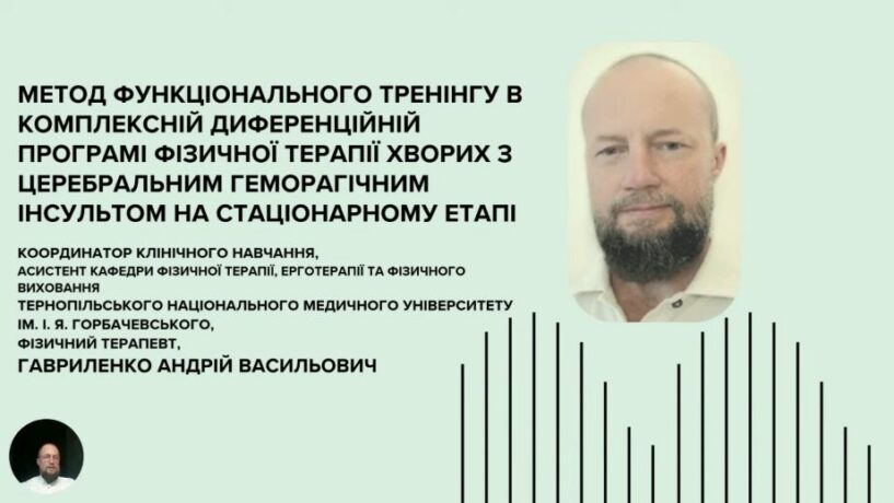 Асистент кафедри фізичної терапії, ерготерапії та фізичного виховання ТНМУ Андрій Гавриленко презентував доповідь на тему «Метод функціонального тренінгу в комплексній диференційній програмі фізичної терапії хворих з церебральним геморагічним інсультом на стаціонарному етапі».