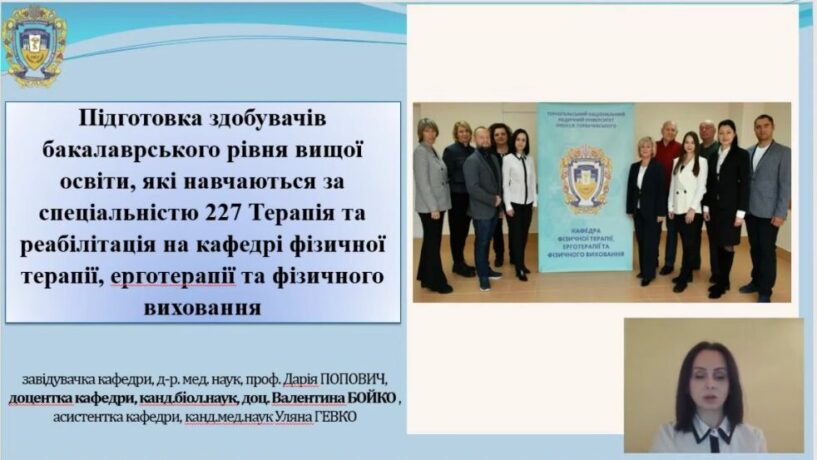 Доц. кафедри фізичної терапії, ерготерапії та фізичного виховання ТНМУ Валентина Бойко розповіла про підготовку здобувачів бакалаврського рівня вищої освіти, які навчаються за спеціальністю 227 «Терапія та реабілітація» на кафедрі фізичної терапії, ерготерапії та фізичного виховання.