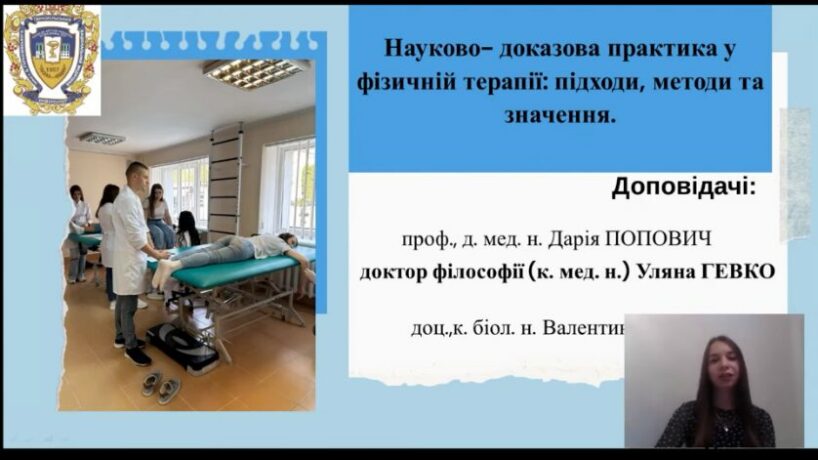 Про «Науково-доказову практика у фізичній терапії: підходи, методи та значення» розповіла асистент кафедри фізичної терапії, ерготерапії та фізичного виховання ТНМУ Уляна Гевко.