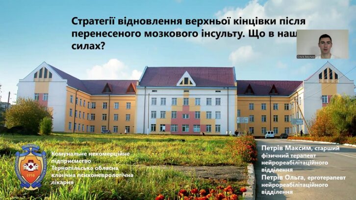 Спеціалісти з нейрореабілітаційного відділення КНП «Тернопільська обласна клінічна психоневрологічна лікарня» ТОР Максим Петрів та Ольга Петрів продемонстрували майстер-клас на тему «Стратегії відновлення верхньої кінцівки після перенесеного мозкового інсульту. Що в наших силах».