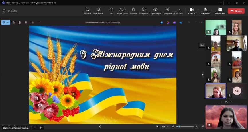 Студенти стоматологічного факультету (СС-105 і СС-106) разом з доценткою Надією Олійник підготували розповіді про святкування Дня рідної мови у світі, історію виникнення свята, особливості святкування, збереження корінних мов у Франції, Італії, Великій Британії, Ірландії, Філіппінах, Пакистані. З особливою повагою розповідали про традиції захисту української мови. На завершення  переглянули документальний фільм «Як українці українською заговорили».
