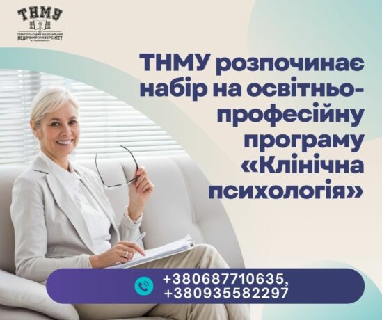 У Тернопільському національному медичному університеті в 20225 році розпочинається набір на освітньо-професійну програму «Клінічна психологія» магістерського рівня.
