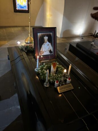 На закінчення мандрівки викладачі, студенти та працівники ТНМУ завітали до Собору Святого Юра – найвеличнішого храму Греко-Католицької Церкви, спустилися в крипту та поклонилися місцям останнього спочинку Митрополита Андрея та Патріарха Йосифа Сліпого, кардиналів Мирослава Івана Любачівського, Сильвестра Сембратовича.