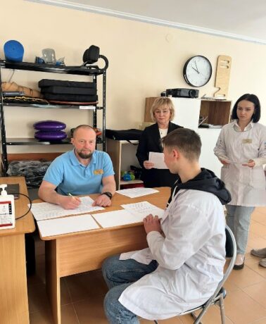 Другий блок (практичний) передбачав демонстрацію практичних навичок в кабінеті доклінічної практики на кафедрі фізичної терапії, ерготерапії та фізичного виховання.
