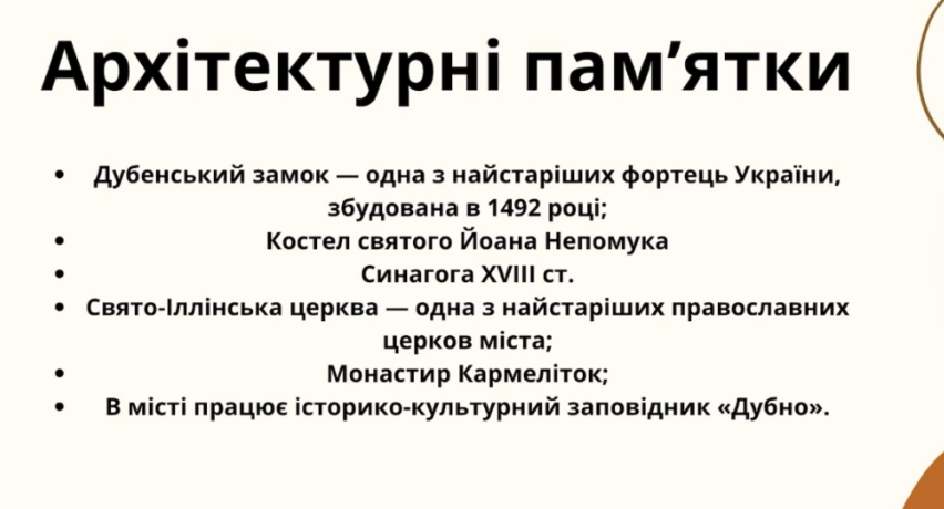 а також студентки ММ-216 Дарини Горшкової про рідне місто Дубно.