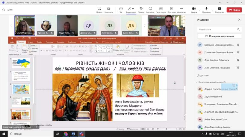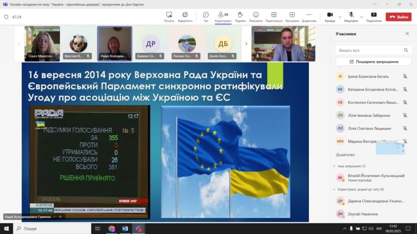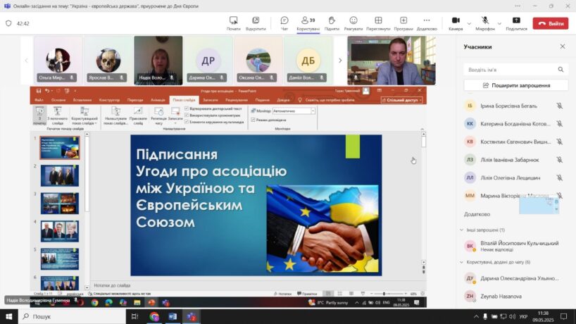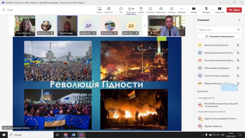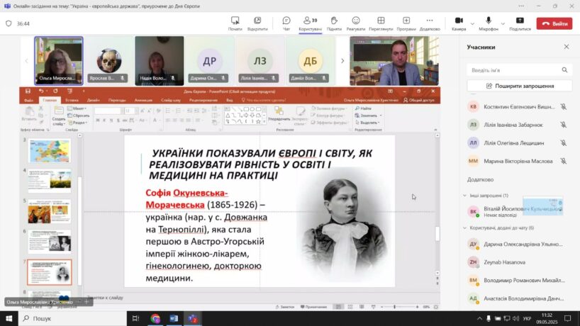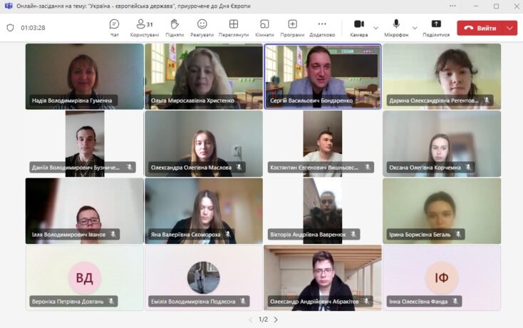 У рамках відзначення Дня Європи в Україні доценти кафедри педагогіки вищої школи та суспільних дисциплін Ольга Христенко, Надія Гуменна та Сергій Бондаренко провели в онлайн-форматі круглий стіл на тему «Україна – європейська держава: історичний, ціннісний та правовий виміри» для студентів першого курсу Тернопільського національного медичного університету.