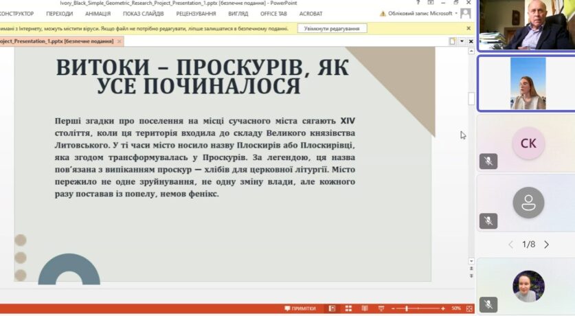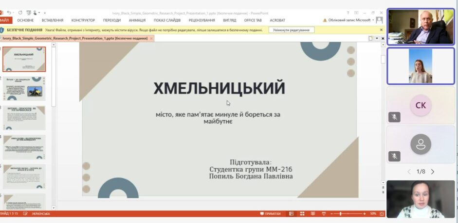 Доповідь студентки ММ-216 Богдани Попиль захопила присутніх історичними фактами та згадками про цікаві місця Хмельниччини.