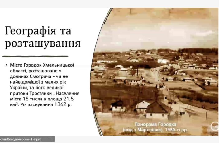 Студент ММ-216 Петрук Ярослав познайомив присутніх із рідним містом Городком та рекреаційними зонами Хмельниччини.