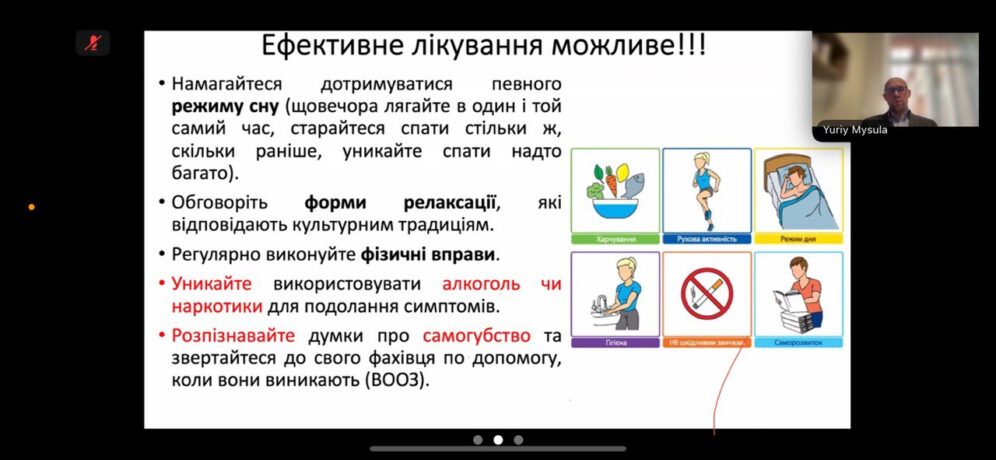 Спікером заходу був професор Юрій Ігорович Мисула — лікар-психіатр, психотерапевт, професор кафедри психіатрії, наркології та медичної психології ТНМУ. У лекції взяли участь понад 100 осіб з різних регіонів України, серед яких були студенти медичних спеціальностей, сімейні лікарі, терапевти, психіатри, психологи та психотерапевти.