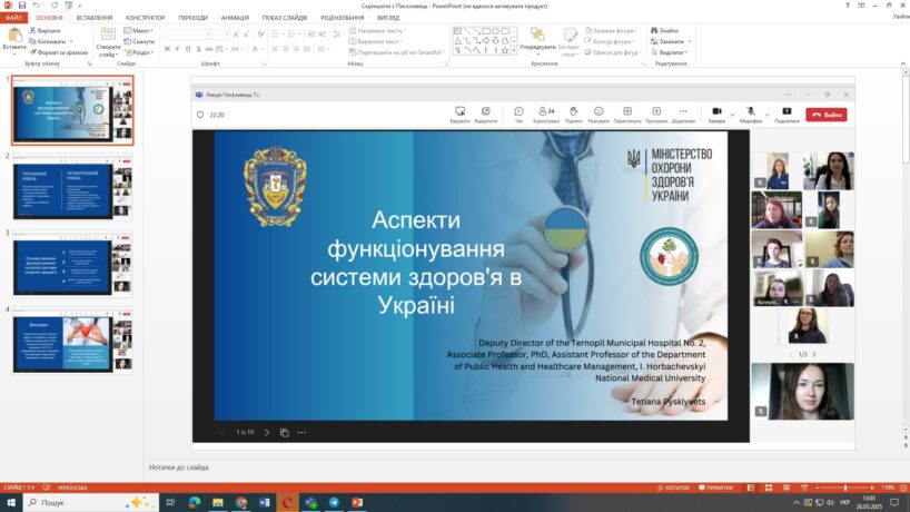 У рамках освітнього процесу для студентів за освітньо-професійними програмами «Менеджмент в охороні здоров’я» та «Громадське здоров’я» відбулася відкрита онлайн-лекція на тему «Аспекти функціонування системи охорони здоров’я в Україні».