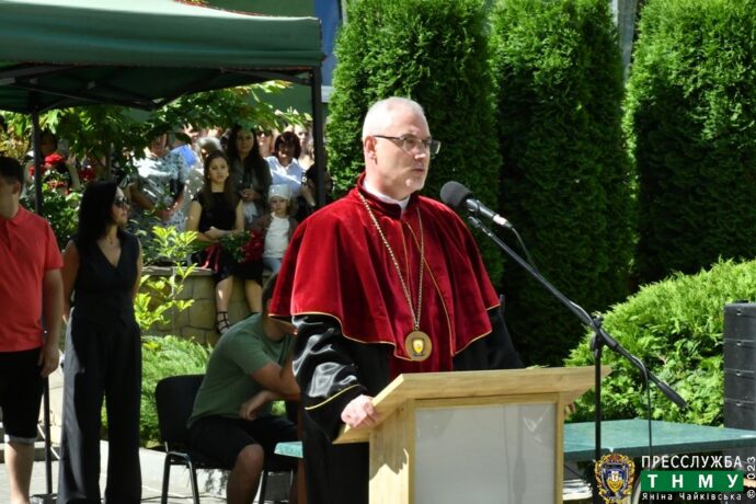 «Сьогодні – особливий та урочистий день. Ви стоїте на порозі нового етапу свого життя – сповненого відповідальності, самопосвяти й служіння людям. Сьогодні ви – випускники, а завтра – лікарі, фізичні терапевти, магістри громадського здоров’я – ті, кому довіряють найдорожче: здоров’я і життя. Обравши медицину, ви обрали не просто професію – ви обрали покликання. Перед вами відкриваються великі перспективи і водночас великі виклики. Попереду у вас – довгий шлях професійного зростання, нових знань, безперервного навчання. Сьогодні ми щиро вітаємо вас з завершенням важливого етапу навчання! Дякуємо вашим наставникам, які передали вам свої знання, досвід та серце. Дякуємо вашим родинам, які підтримували вас у роки навчання. Нехай кожен день приносить вам радість від обраної професії, а ваші знання та вміння допомагають людям жити повноцінним і здоровим життям. Зі святом вас, дорогі випускники! У добру путь!» – побажав Петро Лихацький.