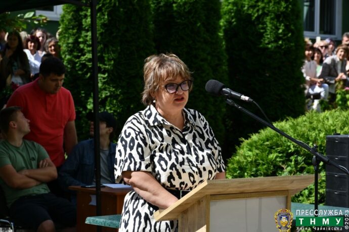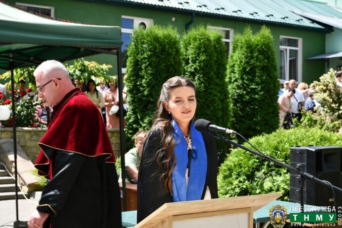 Випускників також привітали гаранти освітніх програм – «Лікувальна справа» – завідувачка кафедри фармакології з клінічною фармакологією, професорка Олександра Олещук, «Фізична терапія» – доцент Віктор Завіднюк, «Громадське здоров’я» – завідувачка кафедри громадського здоров’я та управління охороною здоров’я, професорка Наталія Теренда.