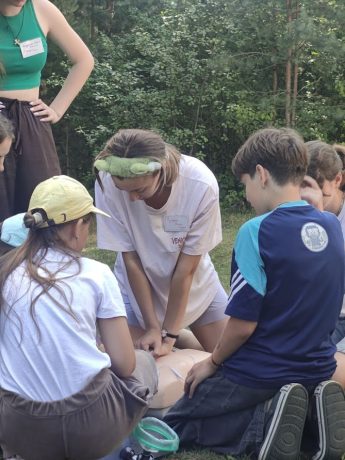 Крім того, Анастасія та Діна прочитали лекції з домедичної допомоги, навчили дітей накладати турнікет, а наприкінці зміни організували квест, під час якого таборяни відпрацьовували отримані навички на практиці. Також студенти провели відкриту лекцію зі статевого виховання, де детально обговорили питання контрацепції, згоди, особистих кордонів, а також фізіології статевого дозрівання хлопців і дівчат.