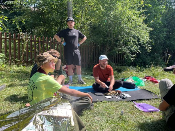 Також Юрій та Максим провели тренінг з першої допомоги, навчили перевіряти свідомість, забезпечувати прохідність дихальних шляхів та показали принципи серцево-легеневої реанімації, навчили накладати турнікет, ознайомили з тампонадою ран і накладання шин, після чого було проведено відпрацювання навичок.