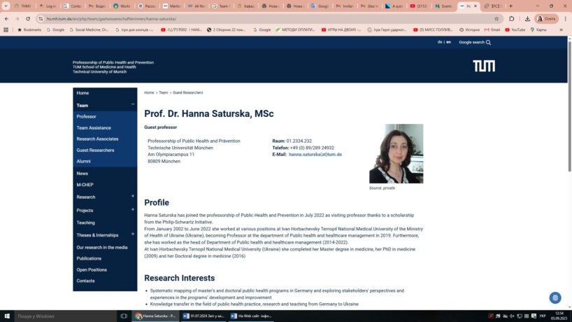 У серпні 2025 року завідувач кафедри громадського здоров’я та управління охороною здоров’я Тернопільського національного медичного університету імені І.Горбачевського, проф. Ганна Сатурська завершила трирічне стажування у Технічному університеті Мюнхена (Німеччина), яке загалом проходило з липня 2022 року по серпень 2025 року.