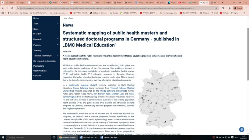 На фото: сторінка з веб сайту колективу кафедри громадського здоров’я та профілактики захворювань факультету медицини і здоров’я Технічного університету Мюнхена